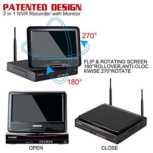 【All in One home security system releases your mind】2 in 1 Network Video Recorder built in 10 inch LCD screen kit release you from selecting corresponding monitors (not a touch screen). Pre-installed 1TB Surveillance hard drive disk supports intelligent footage recording up to months. 2 USB ports offer an extra option to back up recording or upgrade footage. You can also back up, playback and view cameras on smart phone anywhere anytime when wifi or 2G/3G/4G data is available