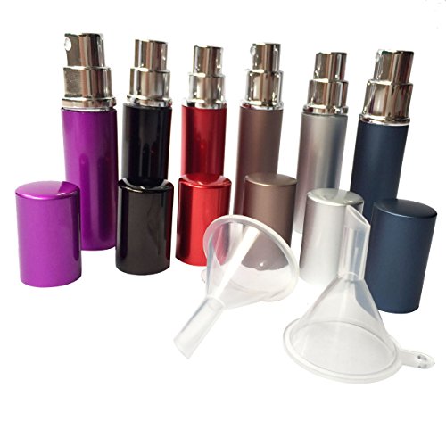 Marketty 6pcs 6ml Portable Mini Refillable Perfume Scent Aftershave Atomizer Empty Spray Bottle with 2 Funnel Filler for Travel Purse
