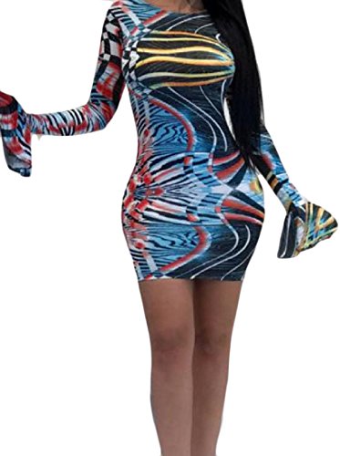 -. Title : Nicellyer 女性のスリムフィットフレアスリーブデジタルプリントラウンドネックドレス