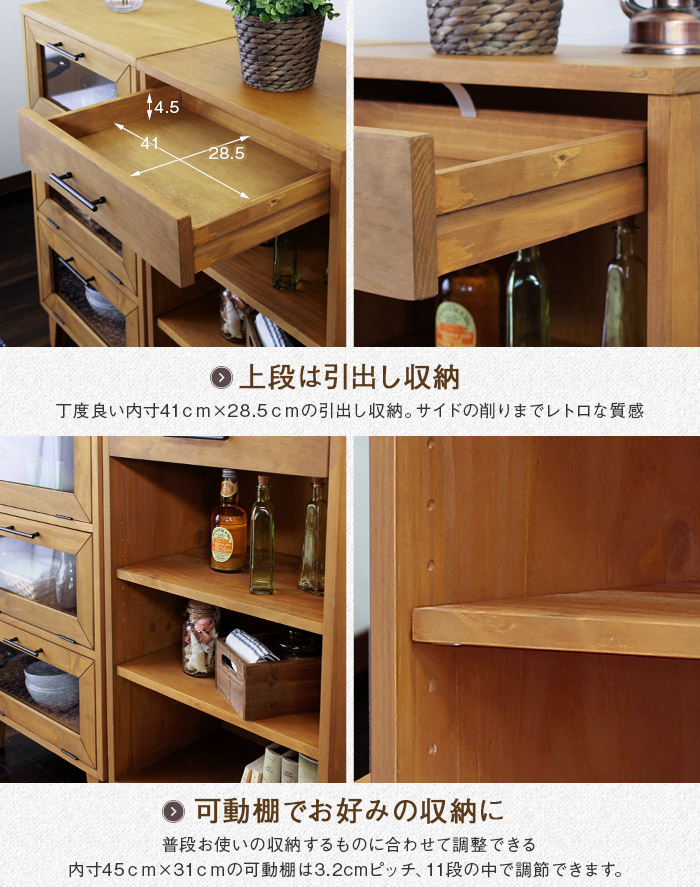 ●棚板は32㎜ピッチ (11段階)で調整可能です