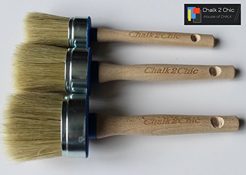 Store Inventory : #BB3 (Chalk Paint Round Brushes) OUR HOTTEST SELLER - 100`S SETS SOLD MONTHLY. SET OF 3 CHALK PAINT ROUND BRISTLE MIX BRUSHES MULTIPACK of 3 #BB SERIES round brushes. #BB3 SIZES : 1 XL , 1 M , 1 S XL: Diameter: 2 inches Bristle length: 2 1/4 inch Handle: round wood 6 1/4 inch M: Diameter: 1 5/8 inch Bristle length: 2 1/4 inch Handle: round wood 6 1/4 inch long S: Diameter: 1 3/16 inch Bristle length: 2 1/16 inch Handle: round wood 5 1/2 inch long. All quantities available. Local stockists welcome. Discounts for multiple ordersFeature
