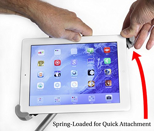 Exclusive free turning desk mount! Exclusive Quick Load Holding bracket! - Grips any iPad and most tablets 7 to 11 inch, even the Surface Pro 3 in landscape mode! The Spring-Bracket greatly improves ease of use and stability. Hook one corner, pull to slip the other corner in and your done! Holds solid!
