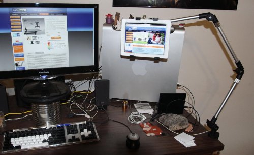 LapWorks Armbot Bed and Desk Mount with exclusive free turning base & Quick Attach Tablet holder for iPads & Tablets For Easy and Relaxed Viewing in any Position