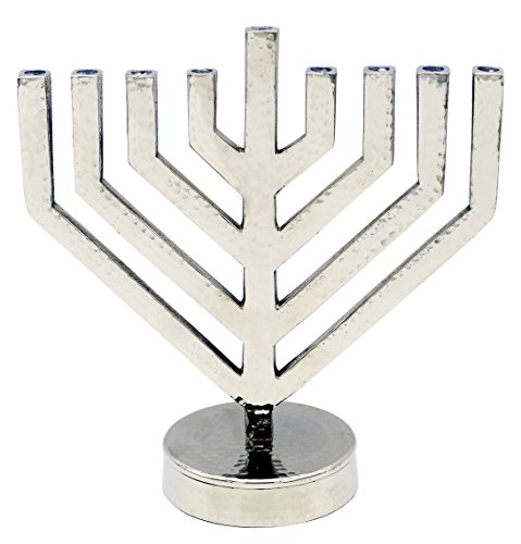 Hanukkah Menorah Modern Hammered Pewter Silver Chanukah Menora