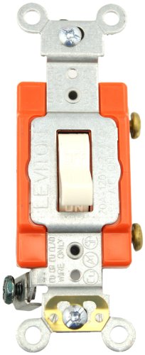 Leviton 1221-2T 20-Amp, 120/277-Volt, Toggle Single-Pole AC Quiet Switch, Extra Heavy Duty Spec Grade, Self Grounding, Light Almond