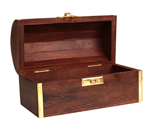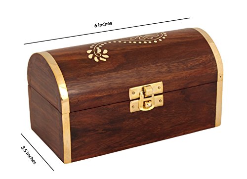 -. Title : Handcrafted Wooden Jewelry Trinket Chest Organizer Keepsake Storage Box with Paisley Brass Inlay