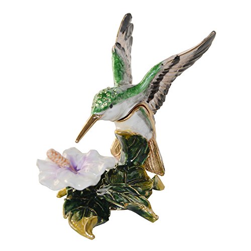 -. Title : Hummingbird on Flower Crystal Bejeweled Trinket Jewelry Box Pewter Figurine