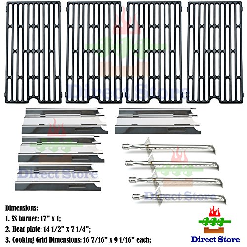 - Direct store Parts Kit includes 4 Stainless Steel burners, 4 Stainless Steel heat plates, and 1 set of 4 Porcelain Cast Iron cooking grids