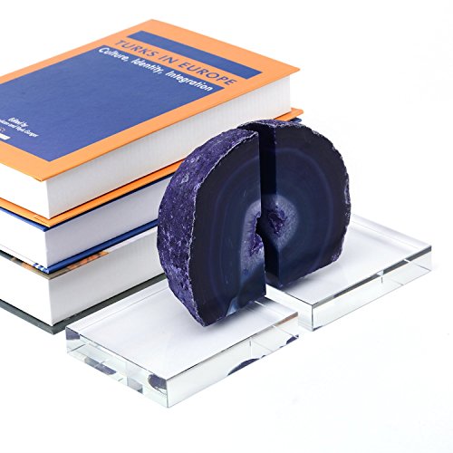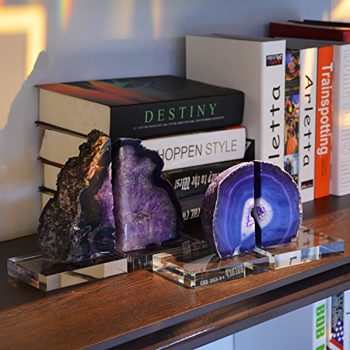 BRLIGHTING Agate Bookends Heavy Duty in Purple BRAC4104 for office, Shelves and Desk Set of 2