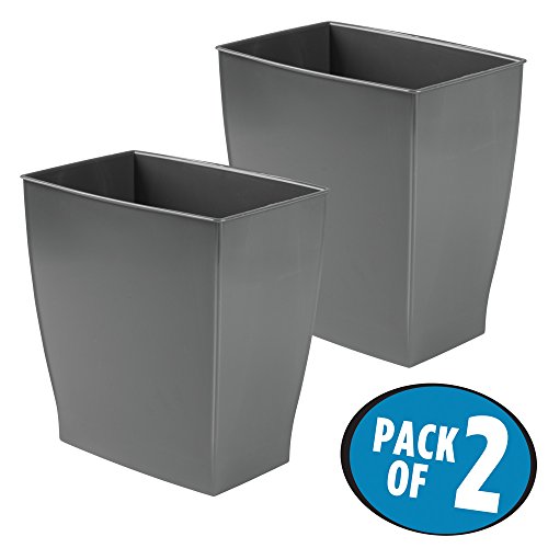 mDesign Rectangular Trash Can Wastebasket, Small Garbage Container Bin for Bathrooms, Powder Rooms, Kitchens, Home Offices - Pack of 2, Shatter-Resistant Plastic, Dark Gray Slate