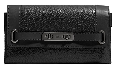 COACH PEBBLE LEATHER SWAGGER WALLET IN BLACKF53028 MW/BK