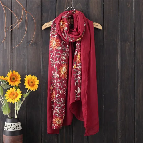 Scarves Name: Floral Embroidery Scarf for Women