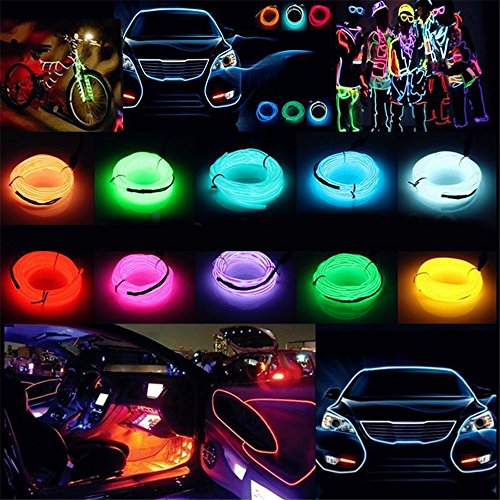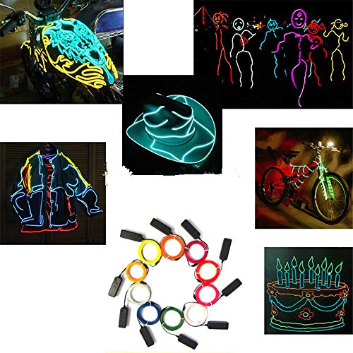 JIGUOOR EL Wire Super Bright Portable Kits with AA Battery Inverter for Halloween Christmas Party Decoration, White/Blue/Red/Green/Pink/[Fluorescent Green/Light Green/Yellow/Orange/Purple