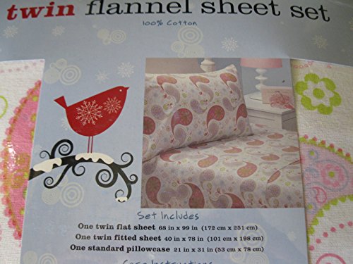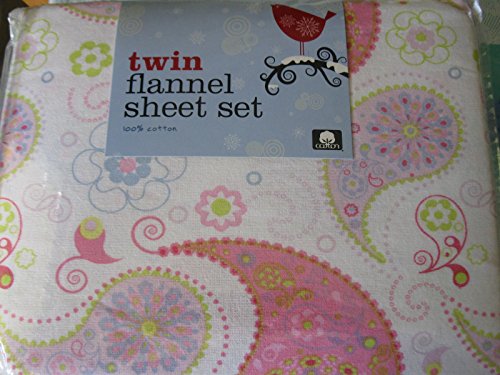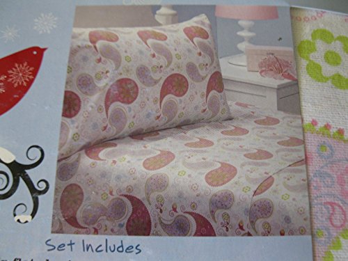 Twin 3 Piece Flannel Sheet Set - Paisley Print in Pinks, Purple, Blue & Green