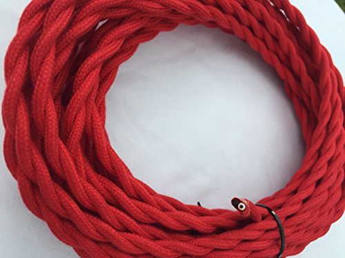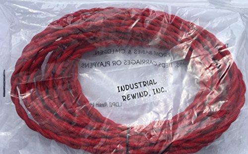 Red Cotton Covered Twisted Cord - 25' Antique Style Cloth Wire - 18 Gauge 2 Conductor - 18/2 Vintage Cloth Cord
