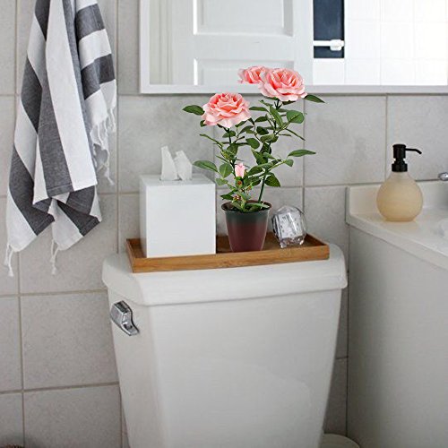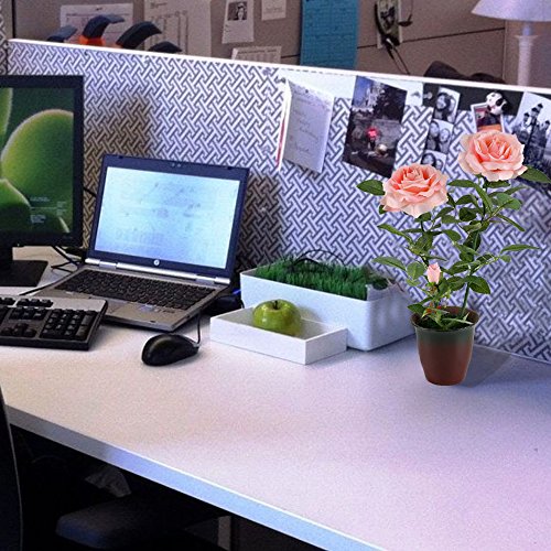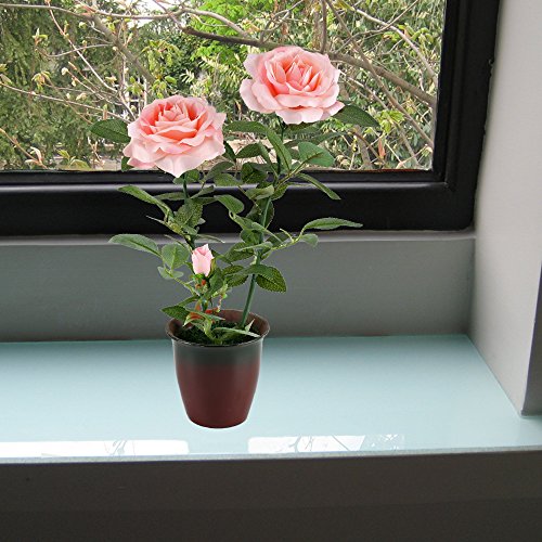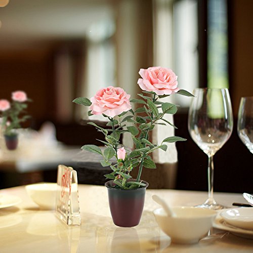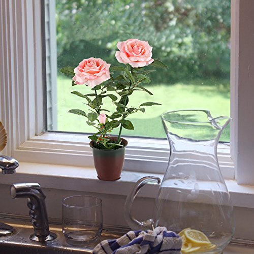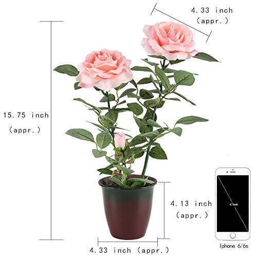 GTidea 15.75" Fake Potted Plants Silk Pink Rose with Retro Ceramic Planter Pot Artificial Bonsai Flowers House Office Table Centerpieces Arrangements Garden Outdoor Decor