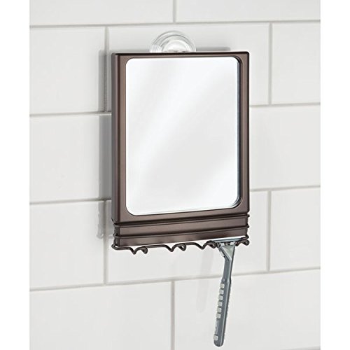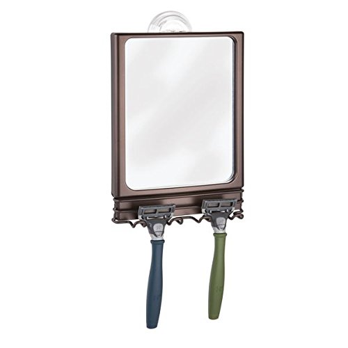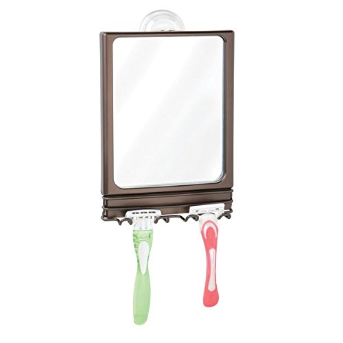 mDesign Power Lock Suction Bathroom Shaving Mirror with Storage Hooks for Shower - Bronze