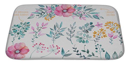 Gear New Floral Set Colorful Purple Floral Collection with Leaves & Flowers Drawing Watercolor Bath Rug Mat No Slip Microfiber Memory Foam