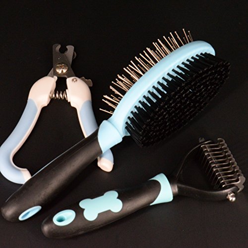 Undercoat Rake (Double Sided) for Cats & Dogs - Safe Dematting Comb (1) + Long or Short Hair Double Sided Comb (1) + Nail Clippers for Small Dogs (1)