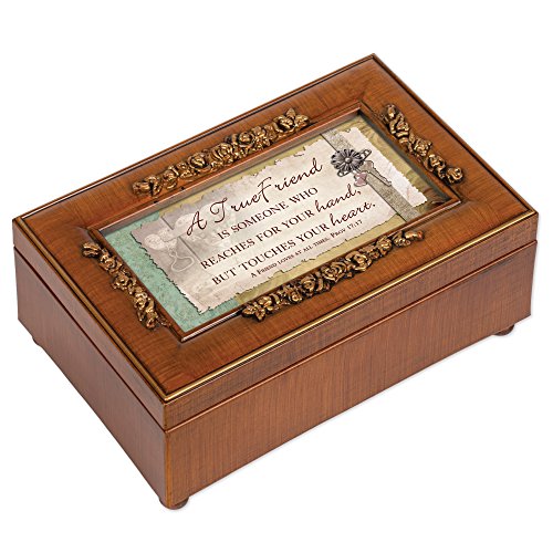 A True Friend Cottage Garden Rich Walnut Finish with Brushed Gold Rose Trim Petite Jewelry Music Box - Plays Song What a Friend We Have in Jesus
