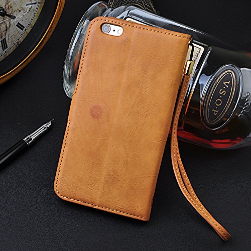 CORNMI Design for iPhone 6 plus Case, Premium Vintage Flip Wallet Leather Magnetic Closure Cover Skin for iPhone 6 plus 5.5 inch with Card Slots, Cash Compartment and Wrist Strap (Yellow)