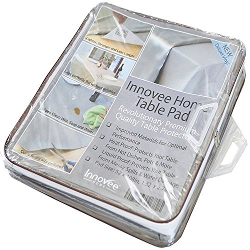That's why Innovee has taken today's best materials and created the ultimate table protector! This vinyl table pad with flannel backing is 52 inches by 108 inches in size and can be cut to fit any table. It also lies wrinkle free so your table looks lovely while it is also being fully protected.