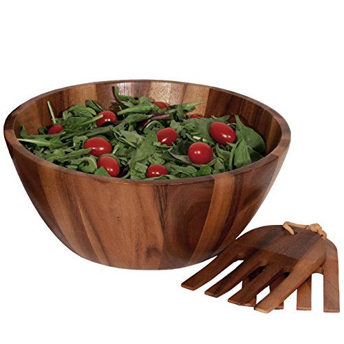 Woodard & Charles 3 Piece Acacia Bowl with Salad Hands