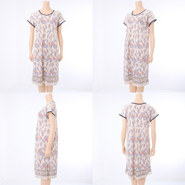 밝고 화사한 컬러감의 꽃 보더나염 스타일로 여성스럽고 우아한 감각의 홈웨어입니다.