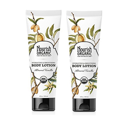 -. Feature : This pack includes two 8 fl. oz. tubes of Nourish Organic Body Lotion with Almond and Vanilla Extracts / Smooth on this soothing, naturally scented lotion / Made with organic aloe, rice protein, acai, essential oils and Vitamin E. / As it gently hydrates and soothes away dryness, it also warms the spirit with the sweet scent of organic vanilla and almond. / Perfect for even the most sensitive skin.