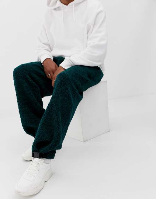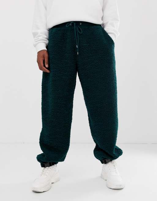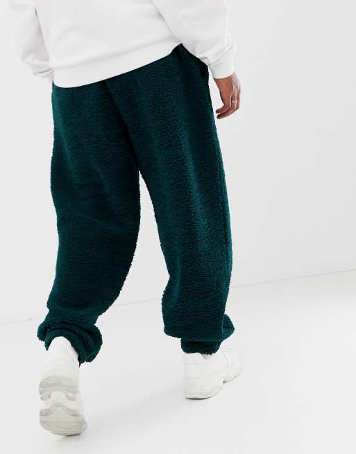 ASOS DESIGN jogger in borg with clip hem in green