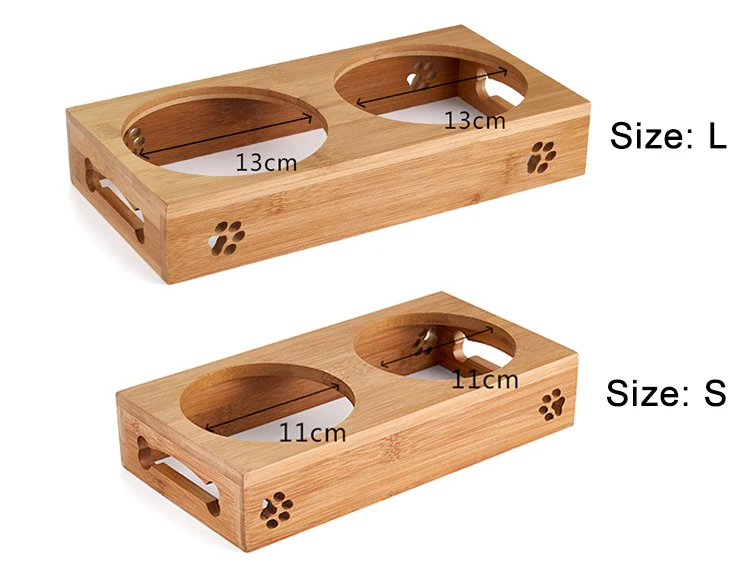 Product details of Pethouzz Pet Stainless Steel Feeding and WaterBowlsCombination with Bamboo Frame for Dogs and Cats (L)