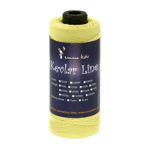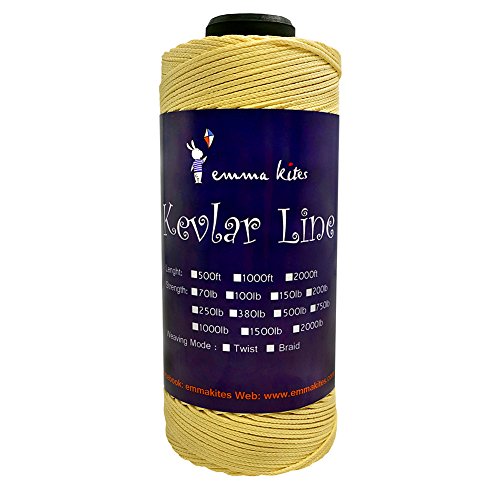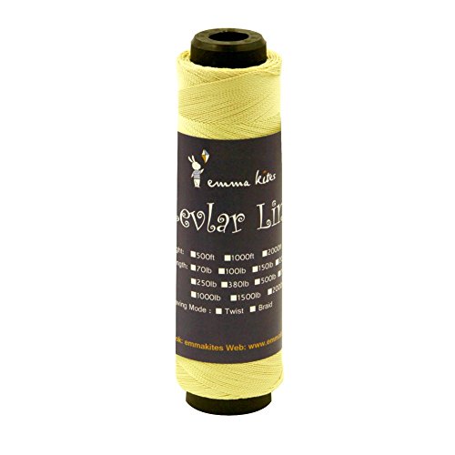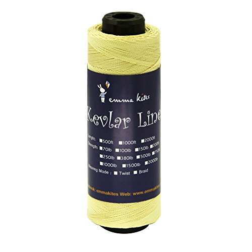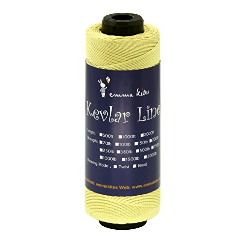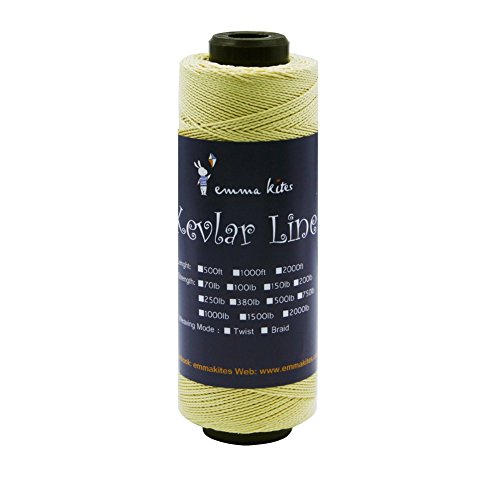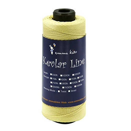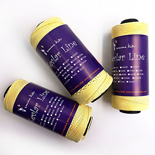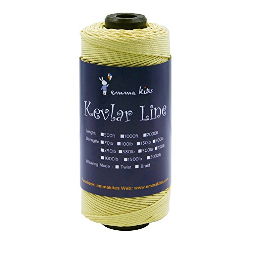 Studio : emma kites Publisher : emma kites Binding : Misc. Product Description Braided / Twisted Kevlar Line Diameter of Twisted Kevlar Line 70lbs: 0.45mm 100lbs: 0.5mm 150lbs: 0.6mm 200lbs: 0.8mm Diameter of Braided Kevlar Line 100lbs: 0.8mm 150lbs: 1mm 250lbs: 1.1mm 380lbs: 1.3mm Recommendation on how to choose kite line for your kites! Please choose the right kite line for your precious kites. This is important! Whenever you fly a kite, please make sure that the line could hold your kite and the wind. The followings are recommendations of line/kite match ( kites are measured by wingspan): Kites below 3ft: 50lb~100lb Kites within 3~4.5ft: 100lb~150lb Kites within 4.5~7.5ft: 150lb ~ 250lb Kites within 7.5~9ft: 200lb~400lb Kites above 9ft: >350lb Recommendation above are for common case. However, things may vary according to different kinds of kite shapes. For example, delta kites of 6ft only needs 200lb kite line, but Rokkaku (hexagon kite) of 6ft needs 400~500lb kite line because their venting methods are so different. Also, kite spar's material, the vent part of kites... all details of kites will lead to the consequences of how you choose kite line for your kite. The wind is also the critical part. All in all: KNOW YOUR KITES and CHOOSE THE RIGHT LINE FOR THEM!!! 0