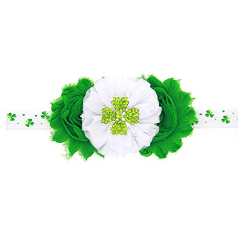 Binding : Apparel Product Description Baby Girls Headband St. Patrick's Day Green Clover Flower Shabby Hair Band Sparking Rhinestone Bling Hair Accessories Irish festival holiday party decorations Notes: 1.Please allow 05"-1"(1-3CM) differs due to manual measurement 2.Real color may slightly different from pictures due to computer screen's resolution, brightness, contrast etc. Hope understanding. Have a nice shopping day.