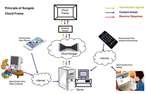 -. Binding : Electronics -. Brand : Sungale -. Color : Black -. EAN : 0884945002462 -. Feature : Receive real-time photos from cell phones from different different cities or countries / Enjoy free cloud storage space where you can store your photos and other files / Compatible with social media including Facebook, Twitter, Instagram, Google+ and others / Watch movies from Netflix and other video hubs / Built-in Drop Box to receive photos automatically from your cell phone. -. Label : Sungale Group Inc. -. Manufacturer : Sungale Group Inc. -. Model : CPF716 -. MPN : CPF716 -. PackageQuantity : 1 -. PartNumber : CPF716 -. ProductGroup : Photography -. ProductTypeName : CAMERA_OTHER_ACCESSORIES -. Publisher : Sungale Group Inc. -. Studio : Sungale Group Inc. -. Title : Sungale CPF716 7" Smart Wi-Fi Cloud Digital Photo Frame with touch screen operation built in battery free Cloud storage real-time photos Movie Social Media Browser all apps -. UPC : 884945002462