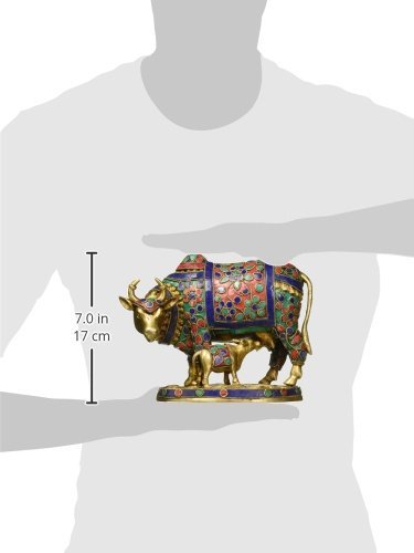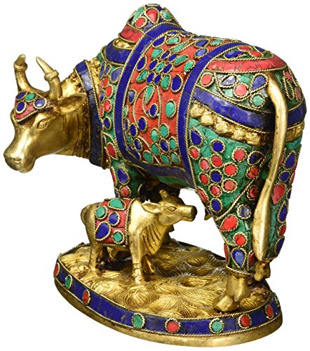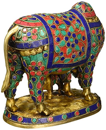 - Beautiful Very Rare Hand carved metal brass and turquoise Gemstone work on body of Animal cow in relaxing position. This beautiful statue is of brass material with fine carving of Genuine Turquoise and some other precious stone. Don't miss looking at all detailed hand carving around the cow and child