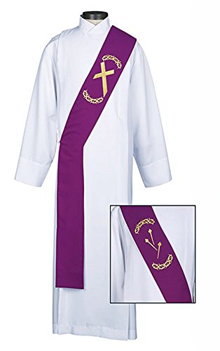 Studio : AT001 Publisher : AT001 Binding : Jewelry Product Description Part of our Church Seasons and Event Stole Collection, this Lenten Deacon stole is made of 100% polyester with reinforced embroidered stitching and seams. Fully infused with interfacing for extra structure, it features a side cord to keep the stole comfortably in place. ⓒEllen Kamysz - Licensee Christian Brands -- 100% Polyester- 300D*300D/58*53/156gsm -- 5" W x 110" L 0