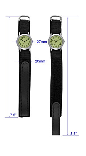 -. Feature : Night Glow dial / Nylon band / Easy reading in the dark / Adjustable watchband fits most / Ladies' size watch