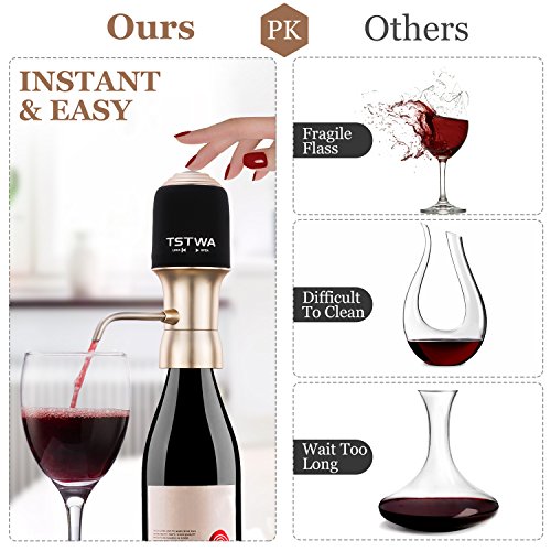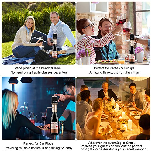 Studio : Wine aerator factory Publisher : Wine aerator factory Product Description There is a choir of angels singing, every time we tap this button and red wine pours artistically out the spout - aerated from a freshly opened bottle of wine. when your starving, dinner is finally on the table ,lovely aromas wafting under your nose , Who has time to wait??? And truly, all you want is a sip of wine... a good one. Please, for the love of all that good and holy. Just one good sip. Let Your Alcohol Breathe Unlock the perfected taste of wine, scotch, and whiskey with the Electric wine Aerator Decanter. The decanter provides 6 times more surface area oxidation than your average gravity-injected funnel, thus creating alcoholic drinks that are much smoother, full-bodied, and flavorful. Instant Aeration a Perfect PourExperience luscious full-bodied drinks by simply attaching the aerator tap to the bottle and pressing the button for instant aeration by wine air aerator decanter. Airtight Seal Keeps Wine Fresh The decanter's airtight rubber seal prevents air from seeping into the bottleand keeps your wine fresh for longer periods of time. wine aerator and dispenser decanter electric decanter wine aerator pump electrical wine accessories aerator Features The decanter works with most standard US and EU wine, scotch, and whiskey bottle shapes. The flexible tube fits into shorter and larger bottles, particularly whiskey. wine infuser wine tap aerator wine decanter easy to clean . Specifications Dimensions : 5.7 x4.8 x 2.17 in Power Source : 4x Standard or Rechargeable AAA Batteries (not included ) Weight : 0.35 lbs Box Contents1x Decanter 1x User Manual 2x Flexible Tube Please note: store your decenter in a dry place until your next use. If the product is not used for a long time, please remove the battery. 0 |