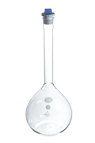 Wilmad-LabGlass LG-8116-126 Class A Volumetric Flask, TC, 4000mL, Size 38 Plastic Stopper