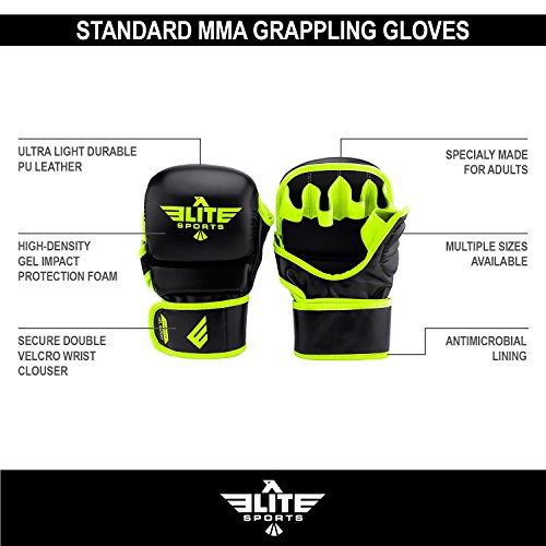 UNMATCHED PROTECTION - No other MMA gloves on the market will prevent hand injury better than the Elite Sports grappling gloves. This is due to the impact absorption foam inside the strike zones of the gloves.