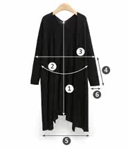 尺码 ①后中长 ②胸围 ③肩宽 ④袖长 ⑤下摆围 ⑥袖口围