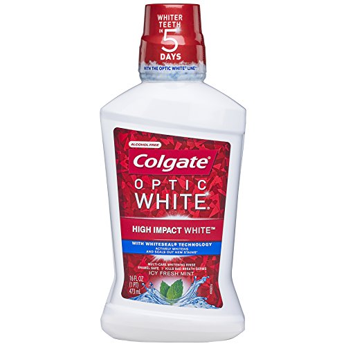 Studio : Colgate-Palmolive Co Publisher : Colgate-Palmolive Co Binding : Health and Beauty Product Description New Colgate optic white mouthwash contains 2% hydrogen peroxide to effectively whiten teeth by removing surface stains. This alcohol-free solution is available in a sparkling fresh mint flavor to freshen breath while whitening teeth and contains polyphosphates to prevent future stains. Dynamic foaming action reaches hard-to-brush places, helping to whiten teeth and freshen breath. For an extra white smile, use after brushing with Colgate optic white toothbrush and toothpaste. 0