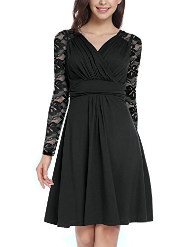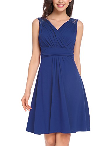 Design: Simple Solid Color with lace shoulder, Sleeveless and Ruched Empire Waist, Knee Length. Suitable for Office, Party, Cocktail and Casual Outdoor. This dress is not lined or padded.