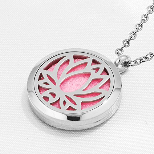 Third Time Charm Aromatherapy Lotus Flower Necklace For Essential Oil Diffuser Locket Pendant, 12 Refill Pads