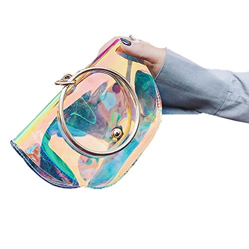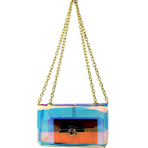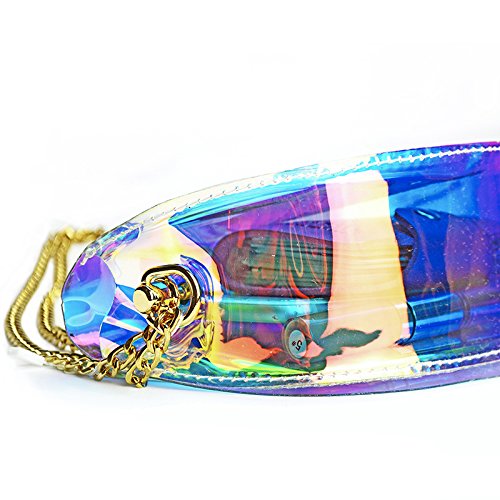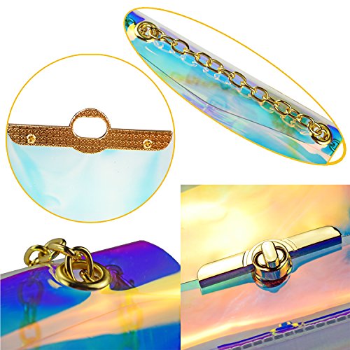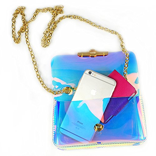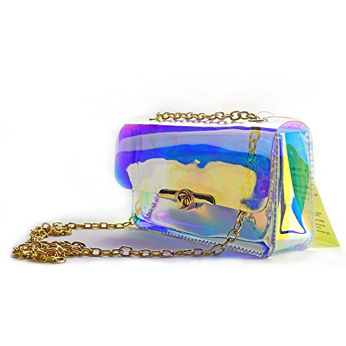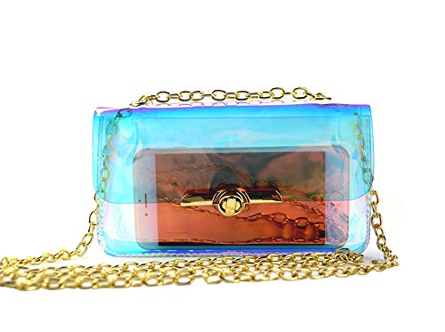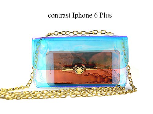 -. Feature : ✿Material: Durable PU,waterproof design - Easy to clean inside and out.High quality PU and great craftsmanship, not the cheap item. / ✿Dimension(L x W x H): 7.87*5.1*1.97 in/20*13*5 cm. Two in one style with removable&adjustable strap , can be used as a crossbody bag or shoulder bag. / ✿Fashion and classy square design with shining laser hologram bright&noble gold-tone hardwear,shows different bright color from different view or light. / ✿ Perfect size,can put your phone such as iphone 6 plus,lipsticks,wallet,cards and so on. / ✿ Special clear colorful view, pass through security with the clear bag and avoid being rejected at the gate or door but also to keep your confidentiality.Suitable for workplaces that require clear bags and meets NFL and PGA Tournament guidelines, ideal for daily,beach,shopping,travel,dating,holidays, party,night-out as crossbody bag,handbag,wrist bag,shoulder bag.