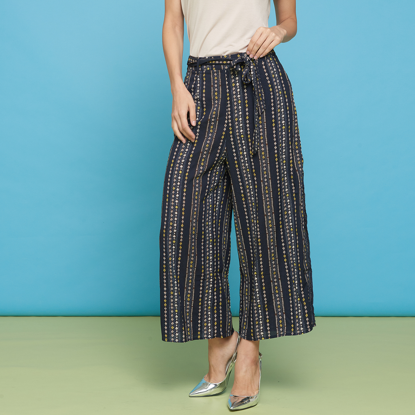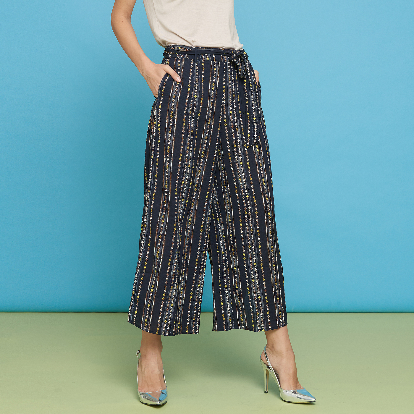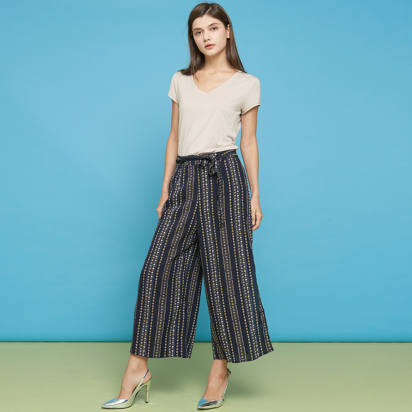 옆트임이 시크한 스트라이프 롱 팬츠입니다.