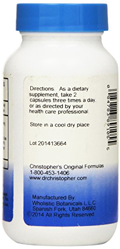 ReleaseDate : 2014-08-29 Studio : Dr Christopher's Formula Publisher : Dr Christopher's Formula Binding : Health and Beauty Product Description Bladder formula: Parsley root, juniper berries, marshmallow root, white pond lily, gravel root, uva ursi, lobelia, ginger root and black cohosh root. Recommended dosage: Two vegicaps three times a day with a cup of parsley tea. This formula is a specific for controlling or overcoming bed wetting and to strengthen the entire urethral canal, kidneys, bladder, etc. Available in vegicaps and extract. 0