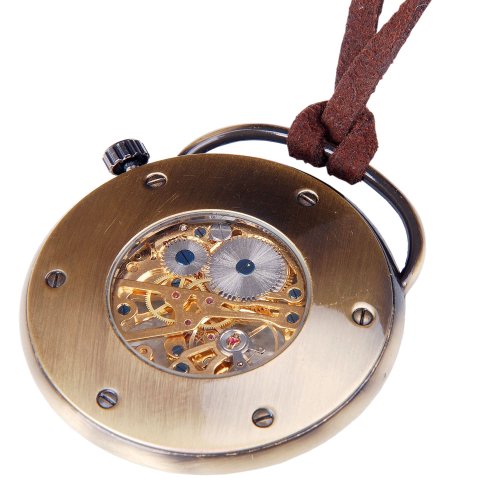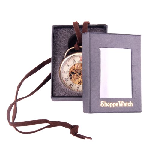 -. Feature : Hand Wind Mechanical Movement / Skeleton Dial with Roman Numerals / ShoppeWatch Brand with Gift Box / Cord Length 365mm (14 inches) / Bronze Tone Metal Case