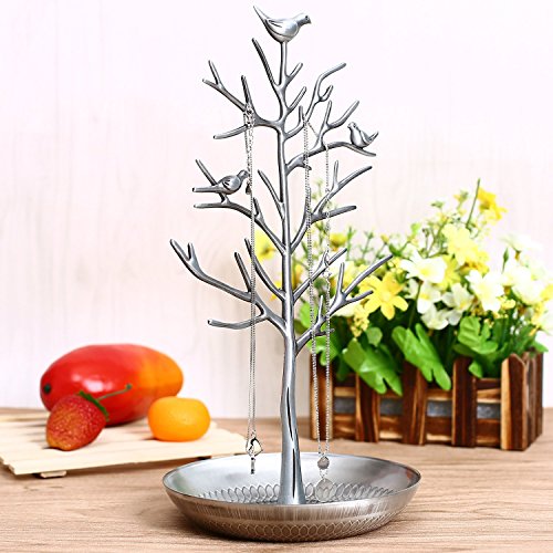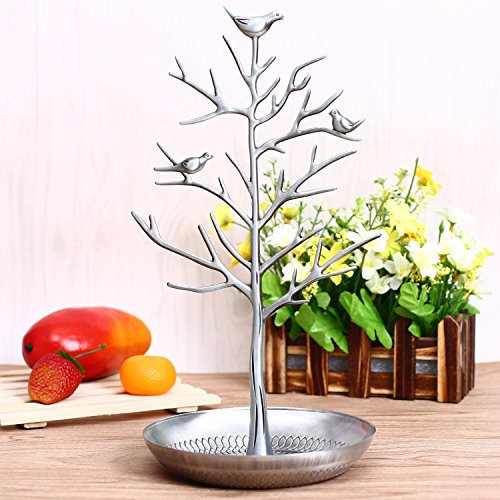 -. Title : Kicode Silver Birds Tree Jewelry Stand Display Earring Necklace Holder Organizer