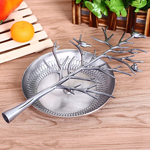 -. Feature : Bird tree shaped jewelry holder organizer, made of high quality galvanized metal / Composed by 2 parts, space-saving, removable, durable and convenient Ideal for retail shop counter display and personal use. It helps you organize earrings, rings, necklaces, etc. / Removable, space-saving when not use. / Wonderful and creative tree hooks/branches design. Multi-function selections, suits your needs conveniently and perfectly. / Kicode Jewelry Tree Display Storage Holder-The best choice for your bedroom.